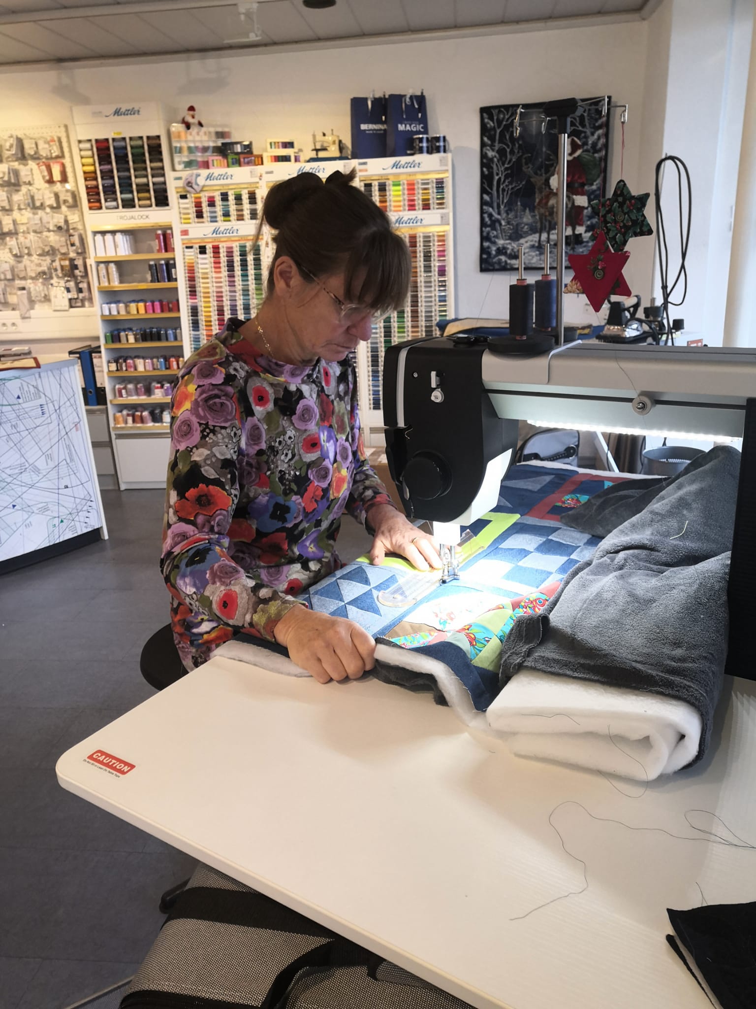 Wir freuen uns auf jeden Fall auf dieses Projekt, bei dem Ihr nach Herzenslust unsere Näh- und Stickmaschinen, alle Arten von Füßen und Sonderzubehör, Stickrahmen und unsere Quiltmaschine, die Q16 ausprobieren & nutzen könnt.