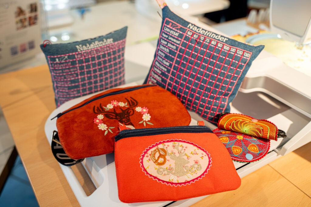 Wir sticken diese direkt auf das Wäschestück oder fertigen die Stickerei als Aufnäher.
