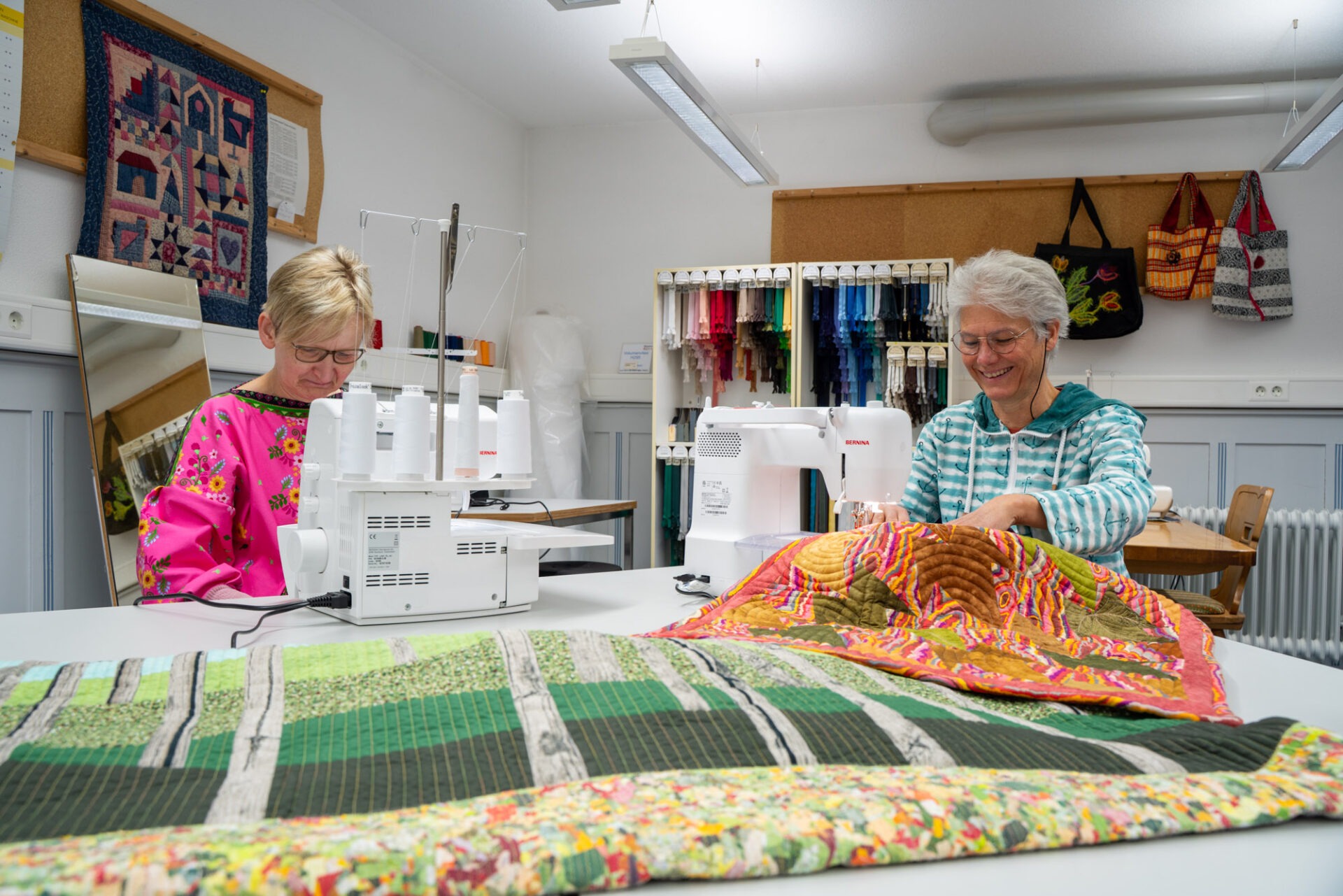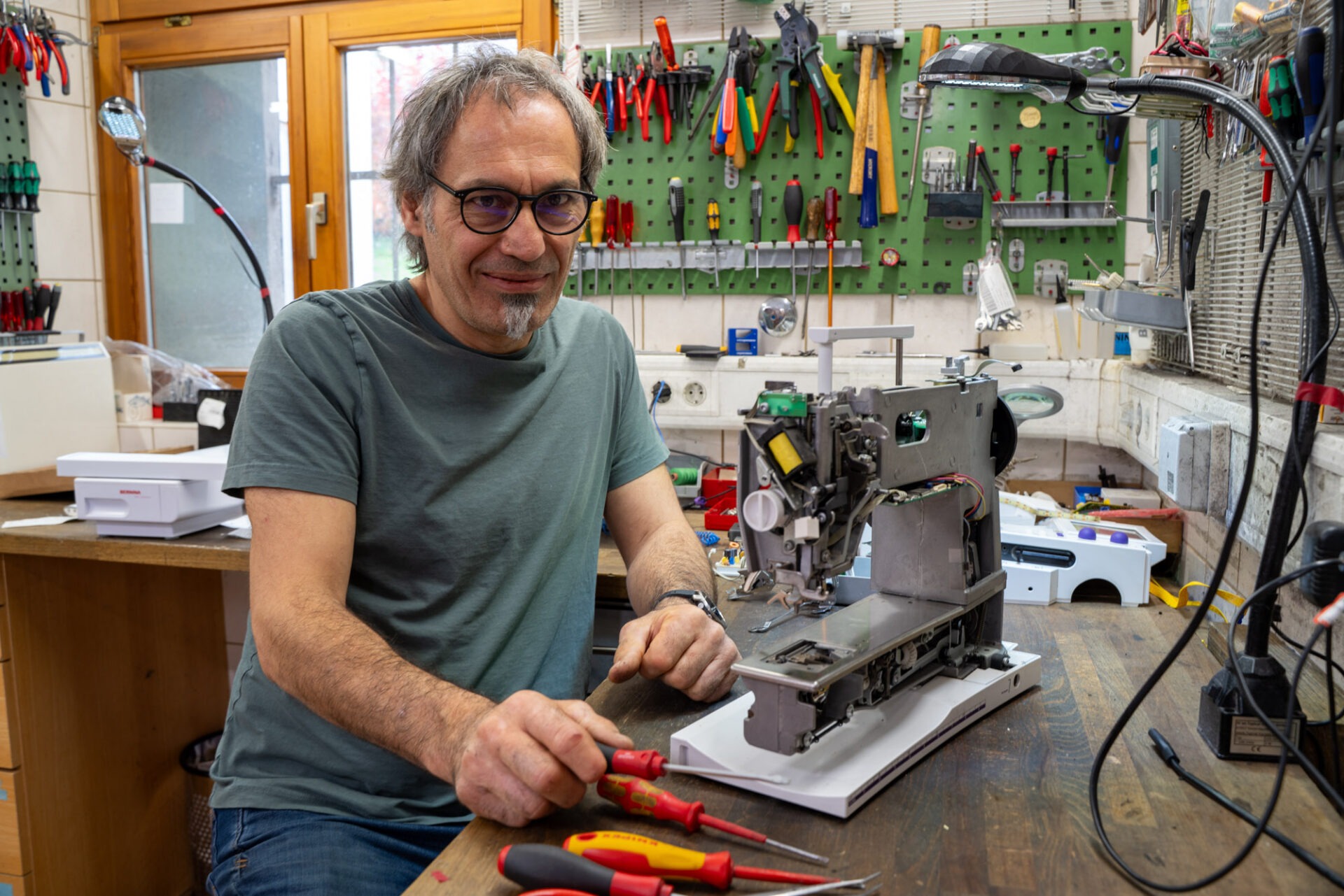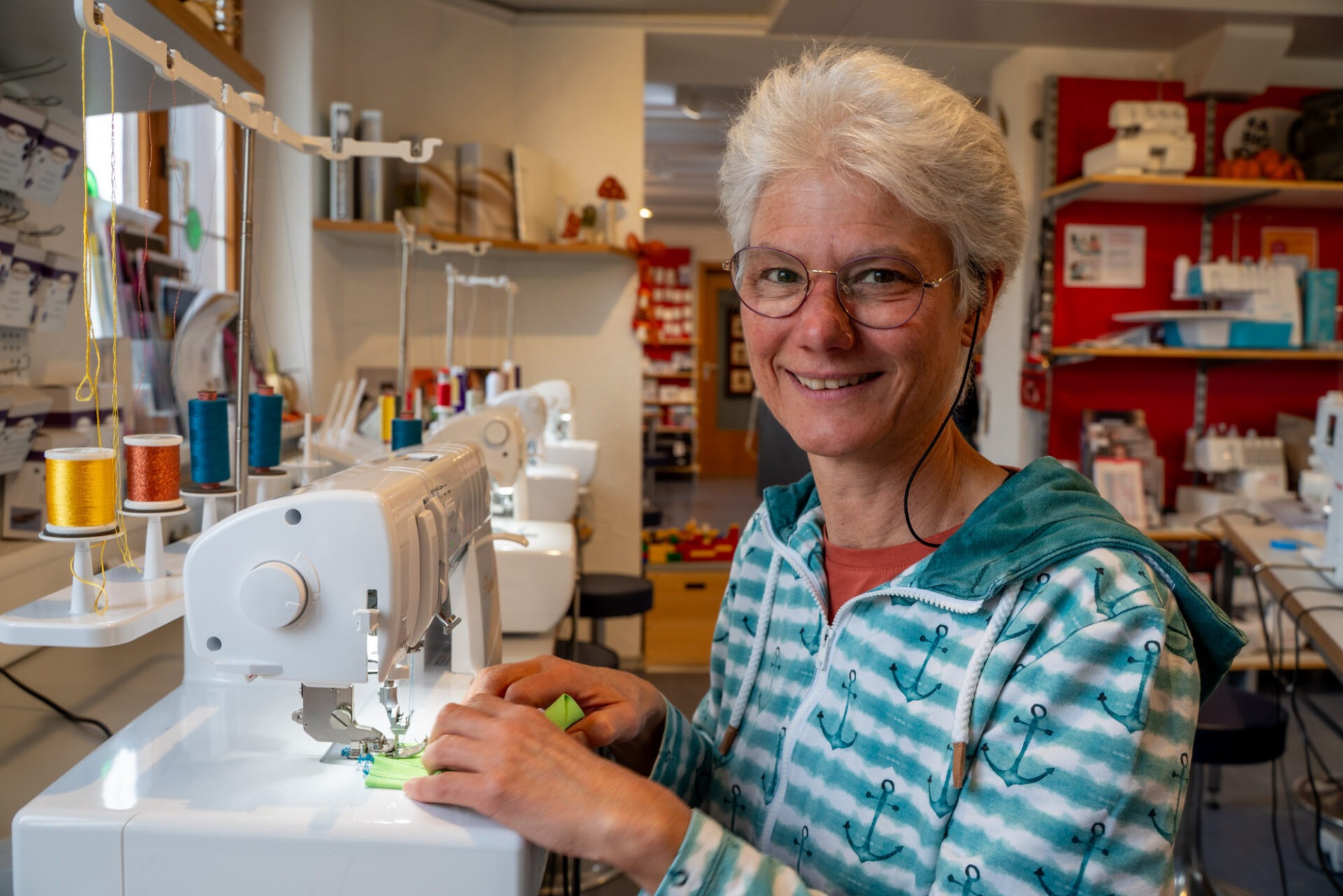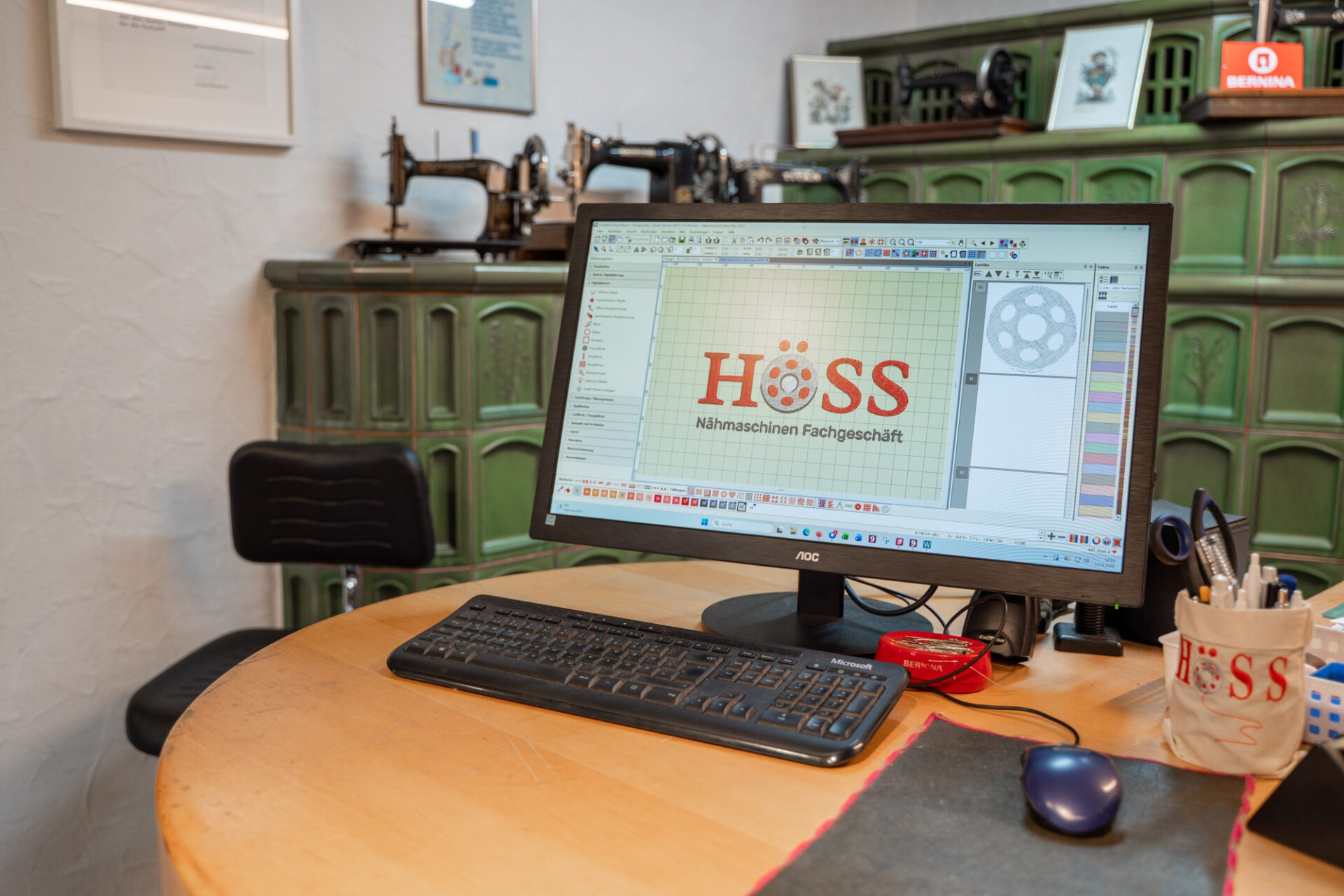 Das ist unser Geschäft in Wahlwies. Wir haben Verkaufsräume für Nähmaschinen und Zubehör sowie separate Räume für unsere regelmäßigen Nähkurse. Außerdem befindet sich im selben Gebäude unsere hauseigene Werkstatt.